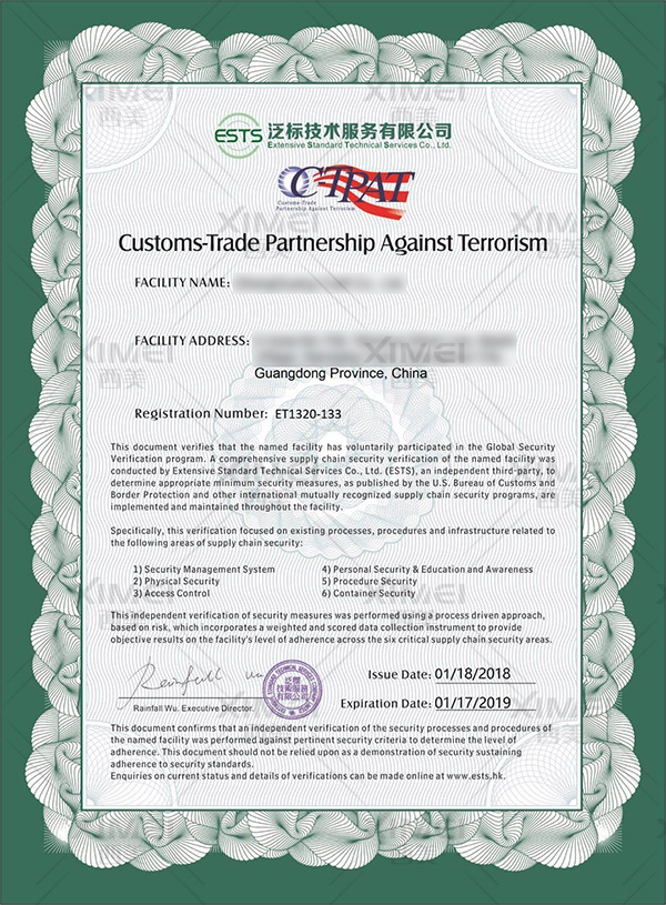 5. 获得受信合作伙伴认可:C-TPAT认证是国际贸易中备受认可的供应链安全标准,有助于企业建立信任关系。