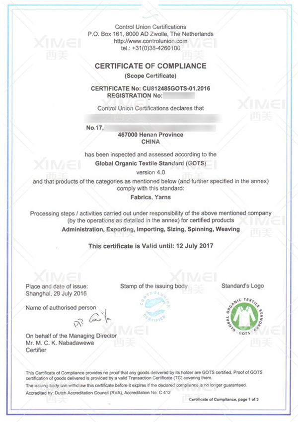 1:在整个的加工过程中确保有机纺织品和常规纺织品的分离。