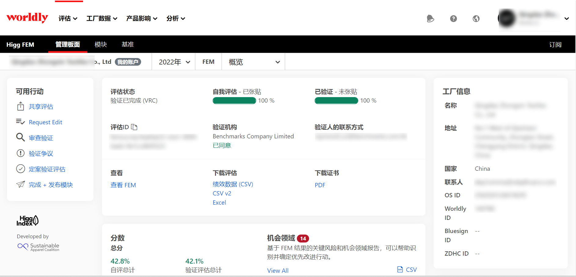 完成评估后,可由SAC批准的现场评估员(即验证机构)进行验证。验证工厂的Higg Index FEM或FSLM提高了分数的可信度和可比性。