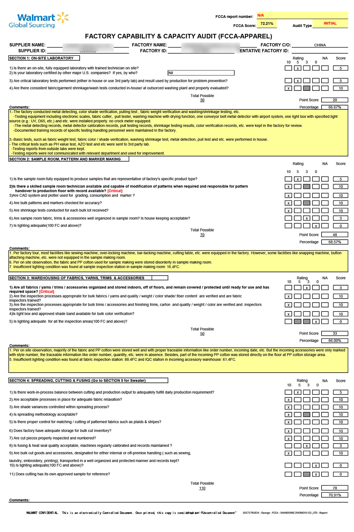 沃尔玛验厂评分标准